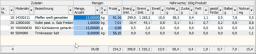 Ein Rezept mit vier Zutaten. Zu jeder Zutat gibt es die Nährstoffe, die wir auch für das Etikett benötigen. Die Fußzeile gibt die Summen der Spalten wieder.